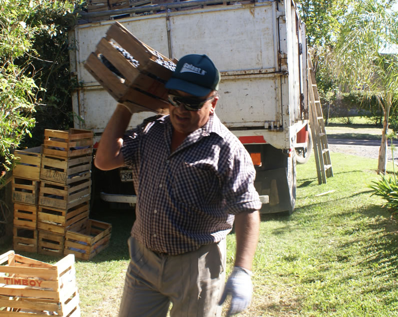 Traslado y arribo de los camiones transportando la uva en cajones