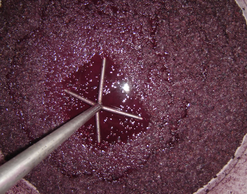 Vino en fermentación. Borra del descube y luego de la fermentación alcohólica, prensado del hollejo para extraer todo el liquido remanente