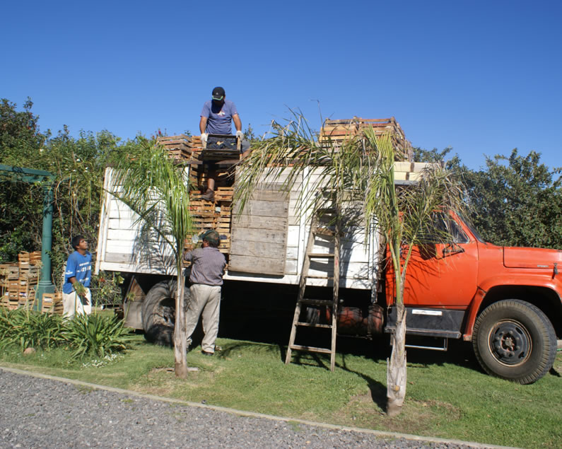 Traslado y arribo de los camiones transportando la uva en cajones